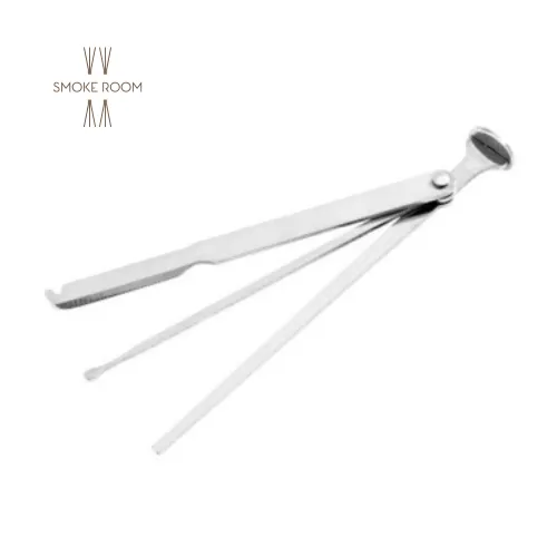 Premium μεταλλικό πολυεργαλείο πίπας Angelo 330060, 3-σε-1 (tamper, scraper, pick). Στιβαρή κατασκευή 11 cm & κομψός σχεδιασμός — ιδανικό για φροντίδα πίπας με στυλ.