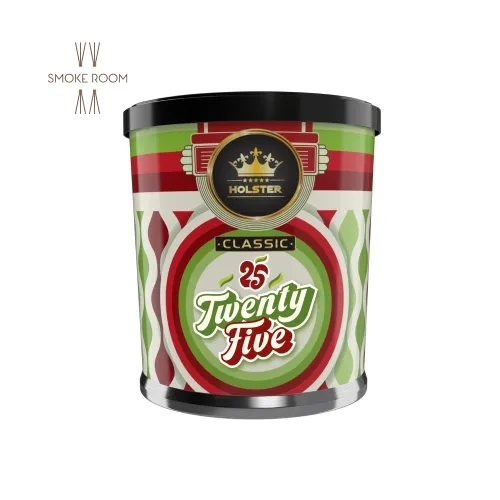 Ο Καπνός Ναργιλέ Holster Tobacco TwentyFive είναι ένα δημοφιλές γερμανικό shisha tobacco με γεύση Double Apple (διπλό μήλο), που συνδυάζει τη γλυκύτητα του κόκκινου και πράσινου μήλου με μια πικάντικη νότα από γλυκάνισο.